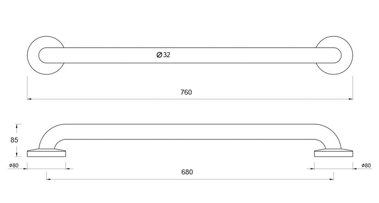 MODEL: KW-8401-GB-680-32-CP Grab Bar 680 x 32 mm in chrome
