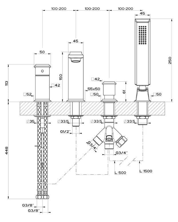 Model: Eleganza 46037.706 Four-Hole Bath Mixer in Black Metal Pvd with Tub-Filler Spout and Diverter