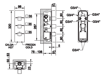 MODEL: Quadro 35007.031 Built-In Thermostatic Mixer 5-exits with selector for single choice in Chrome w/concealed parts