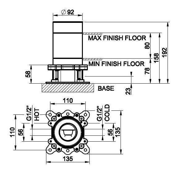 59128.030 +46189.031 Rilievo freestanding bath mixer in copper PVD