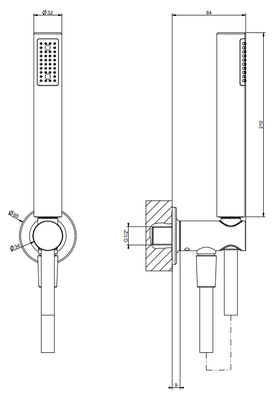 00068368 58123.713 wall-mounted hand shower set in antique brass PVD with shower hook, flexible hose and antilimestone handshower