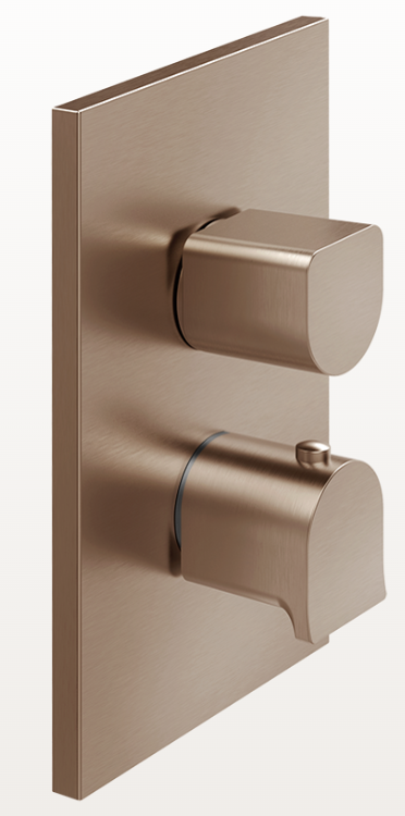 00171759 RILIEVO 59134.708.VER2 External parts for thermostatic mixer, two-way diverter in 708 Copper Brushed PVD; with red and blue indicator and icons