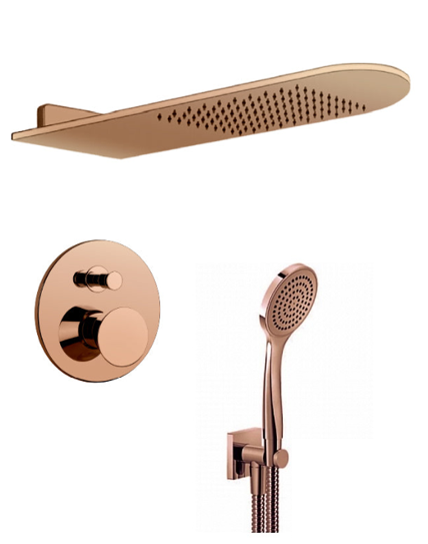 00093329 59123.030 shower set in copper composed by 1/2" connection water outlet, shower hook, 1,50 m flexible hose and antilimestone handshower