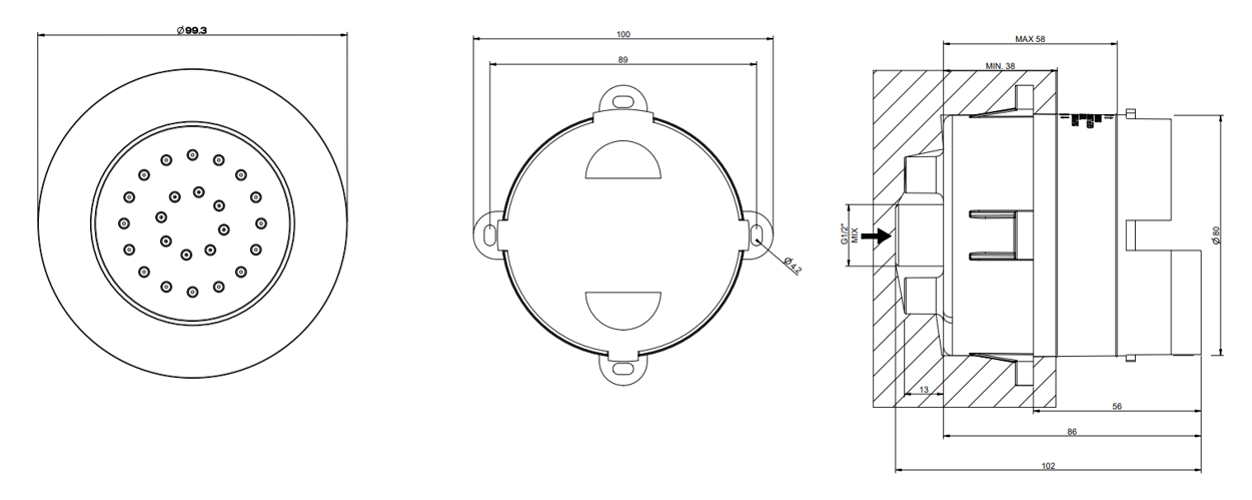 00159768#4 32982.708 Inciso external parts for Tondo built-in adjustabe lateral body jet in copper brushed PVD
