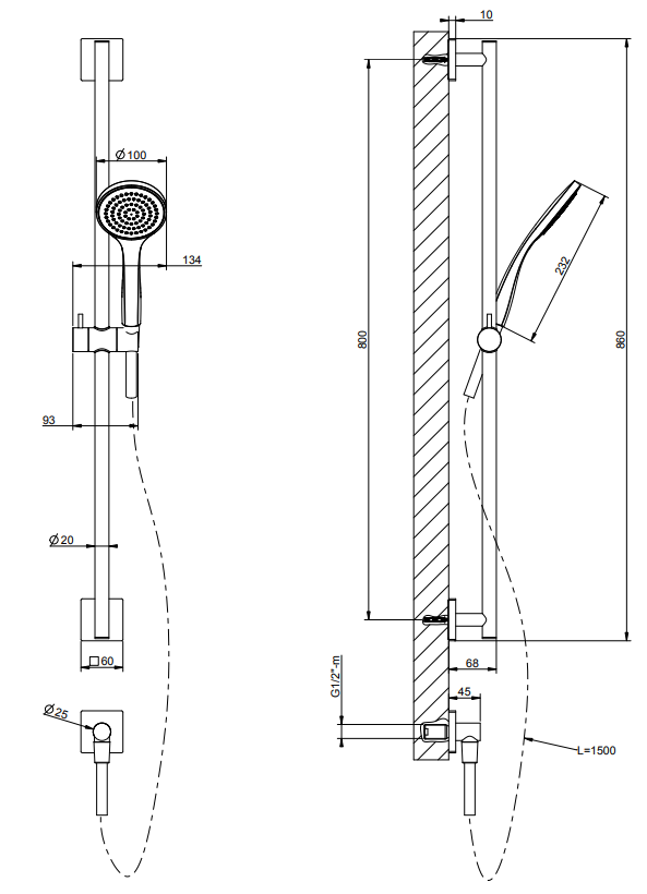 00171396 59242708VER2 Sliding rail with antilimestone handshower, 1,50 m flexible hose (SP02148.708) and water outlet [73S]