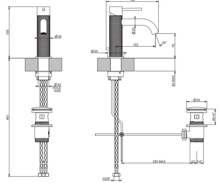 MODEL: 316 54401.239 basin mixer in brushed steel