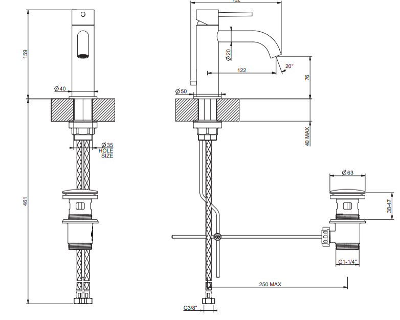 MODEL: 316 Flessa 54001.239 basin mixer in brushed steel