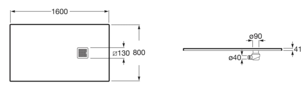 MODEL: AP10264032041200 (RC) Terran Superslim STONEX shower tray L1600 x W800 x H41mm in slate with frame with bottle trap A27L018000