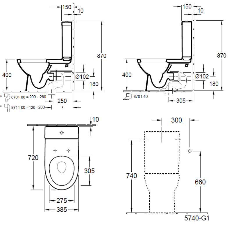 5640.10.01 Tube washdown toilet 385 x 710 mm, 5740.G1.01 Tube cistern side inlet, 9m20c1.01 Tube Seat & Cover in white