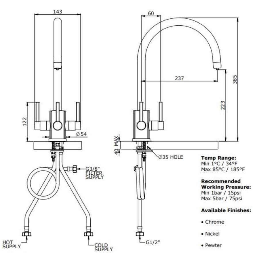 MODEL: KT34C monobloc mixer with C spout and filter in chrome
