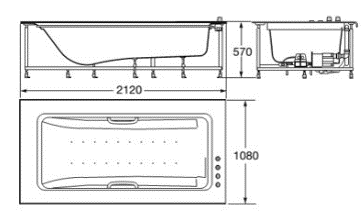 MODEL: 248176 Bathtub 2120 X 1080 mm in Nero with Deck Mounted Thermostatic Bath Mixer, Handles on Side and Headrest