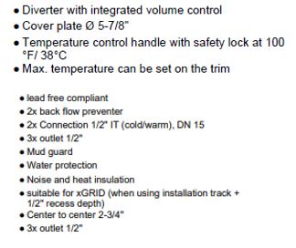 36426831-00 thermostat with two function volume control with 3542497090  concealed part, 28649831-00 wall mounted rain shower & 13801831-00 bath spout in Chrome