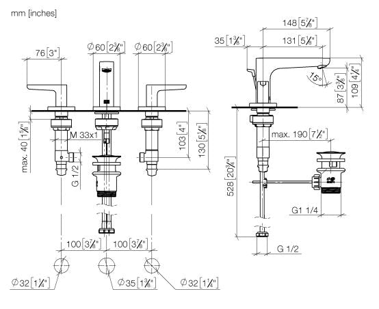 MODEL: YAMOU 20713831-00 Three-hole basin mixer with pop-up waste - polished chrome